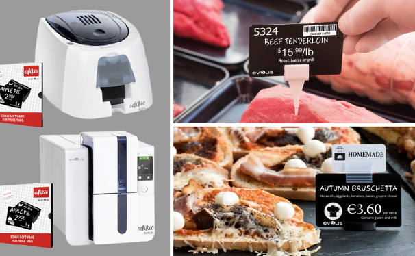 Food Supplies presents Edikio by Evolis: complete solutions for creating and printing price tags quickly, efficiently, and economically. Edikio printers provide everything you need to create attractive price tags directly at your points of sale. Find the printing solution that's right for you - the Edikio Access, Edikio Flex and Edikio Duplex systems allow you to design and print single and double sided price tags on plastic cards in standard (credit card) or long formats.