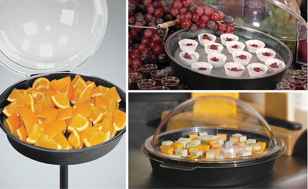 Introduce your customers to the gastronomic joys of a new product by using the Sample Dome. Designed to help maintain your food samples at an optimal temperature while providing quick access, the Sample Dome features a tray with a clear domed lid to make it easy for curious shoppers to take a closer look. Available in both countertop and floor stand heights.
